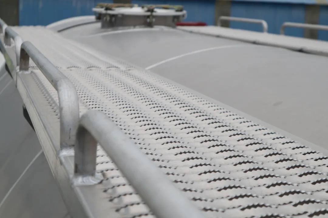 罐頂鋁合金防滑走臺帶防滑功能,既提高了車輛外觀效果,又保證罐頂作業(yè)的安全性;